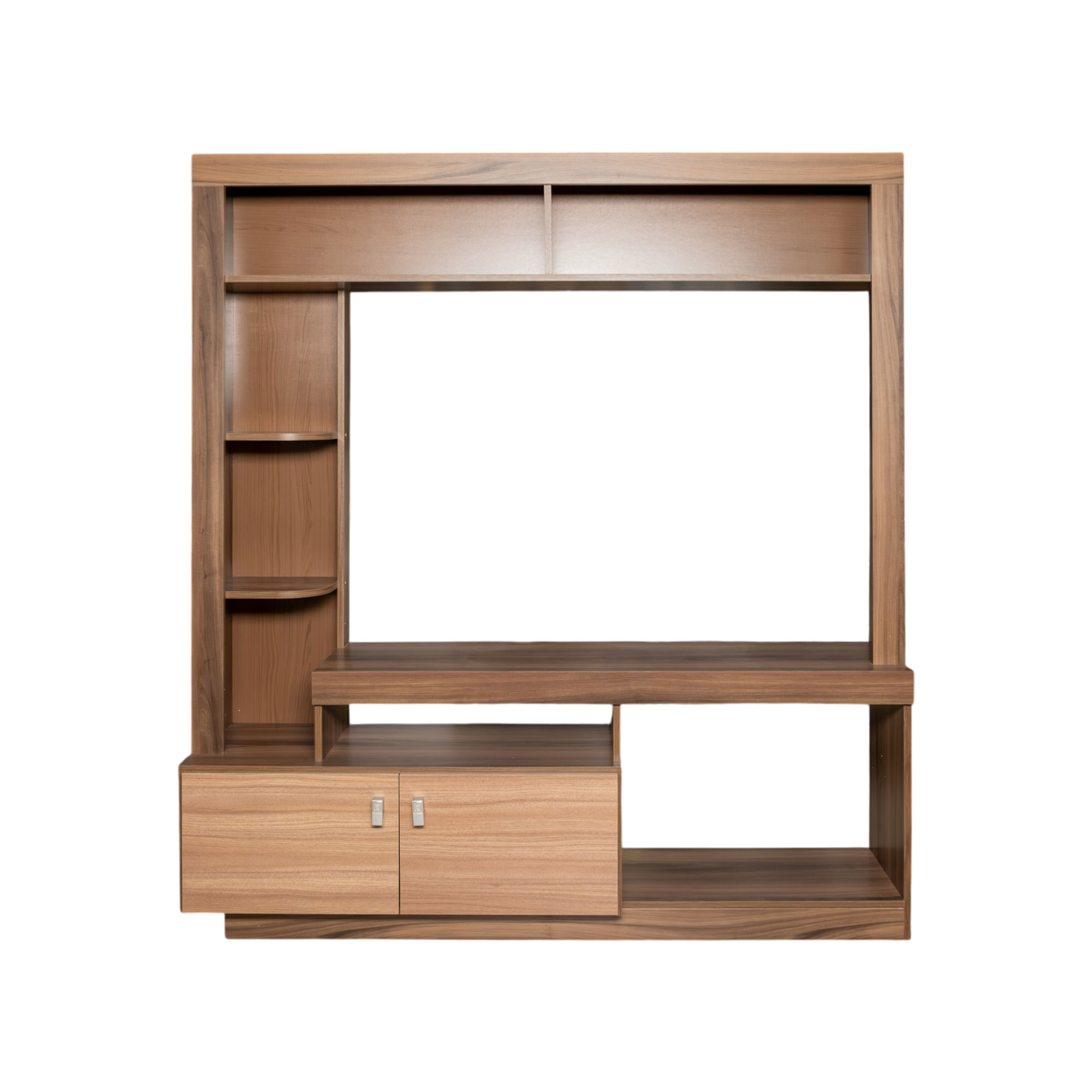 Centro de entretenimiento con varios compartimientos y espacios ideales para el TV.