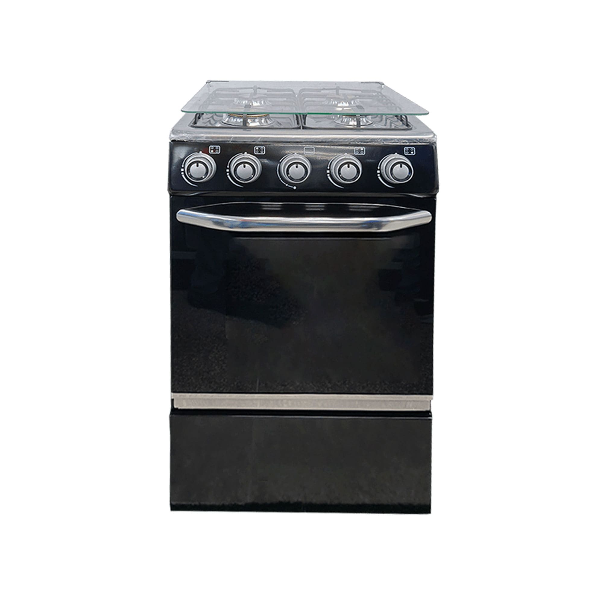 Cocina Omega 4H negra con tapa vidrio