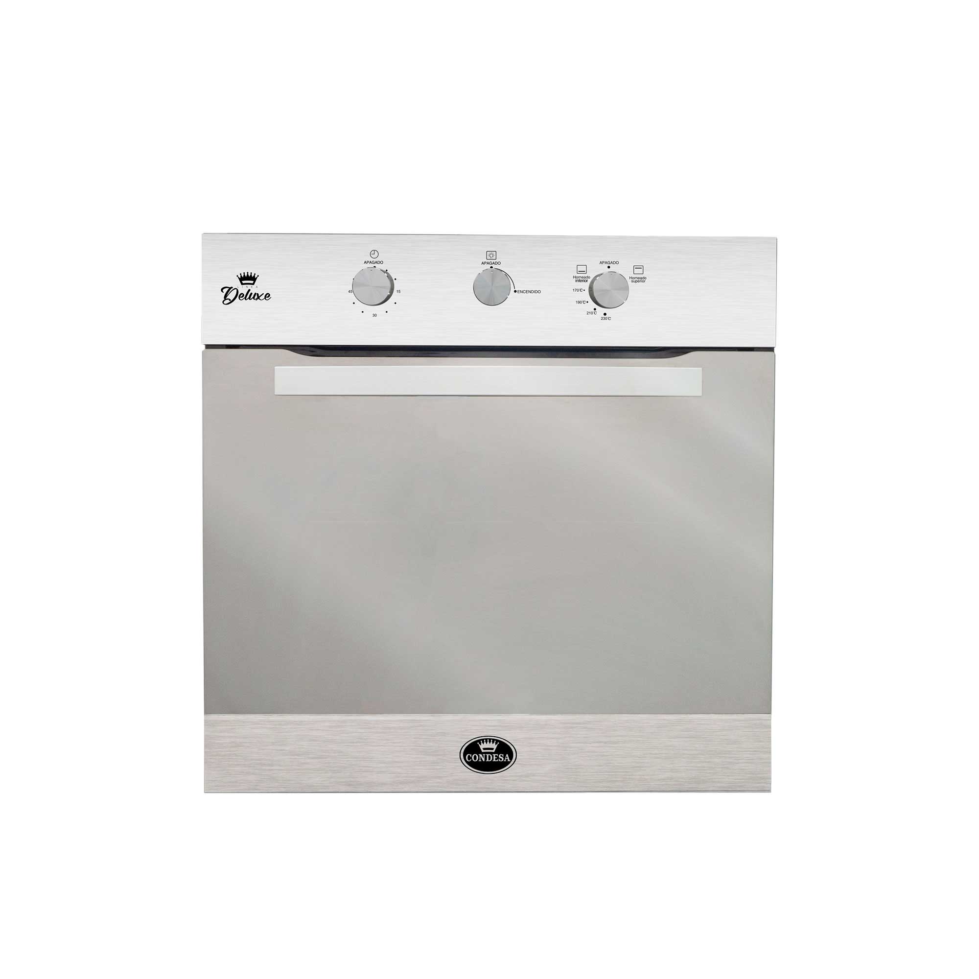 El horno a gas tiene un diseño elegante de acero inoxidable, ideal para cocinas modernas y sofisticadas, esta conformado por un panel de control mecánico para ajustar las cuatro funciones del horno como lo son el horneado convencional, superior e inferior y su luz interna, además sus perillas son metálicas y al abrir su puerta de vidrio templado con visor, podrás encontrar su rejilla y bandeja, también como su nueva modalidad avisa cuando el horneado a culminado exitosamente.