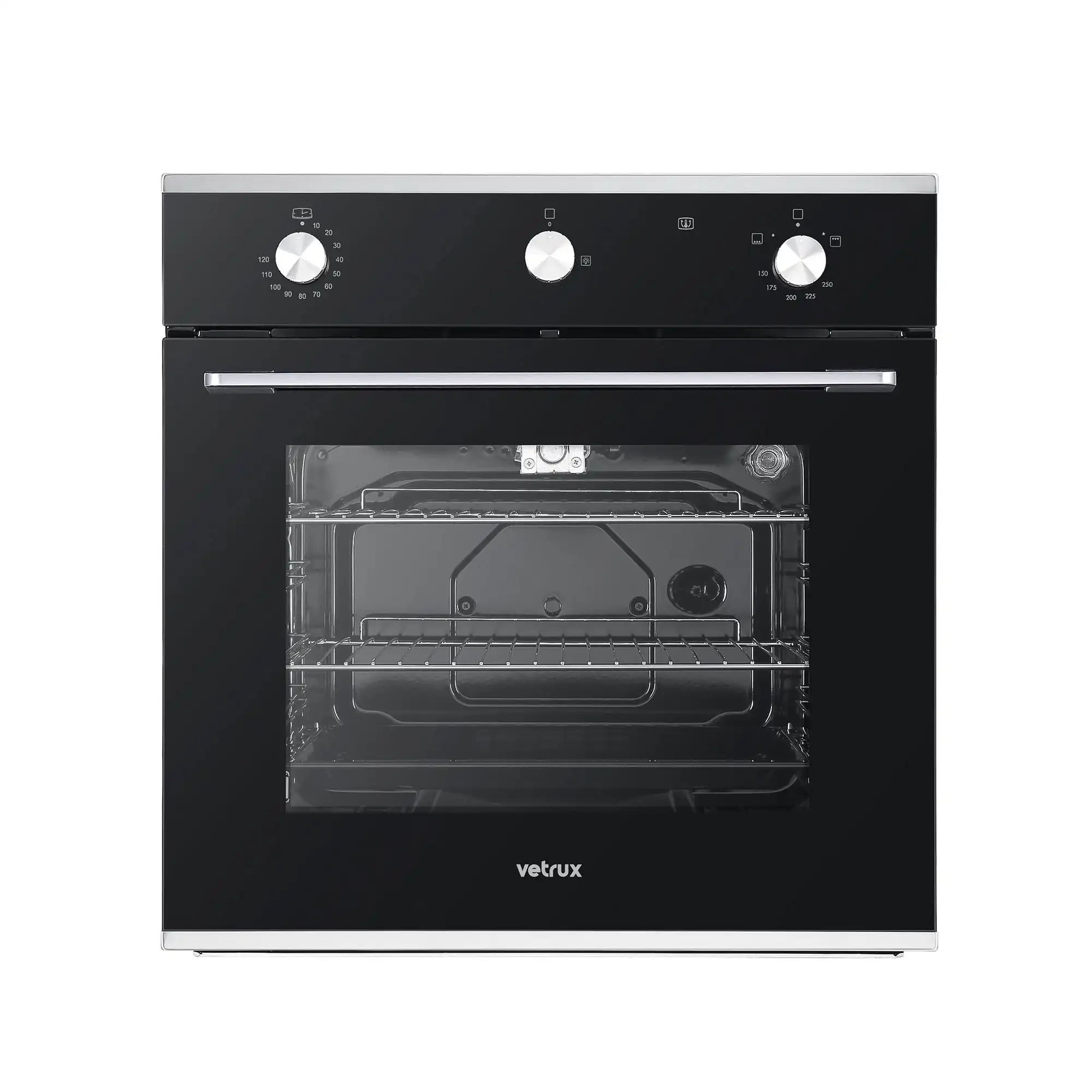 Horno Vetrux, modelo Ignita pro de 60 litros, 60cm. Posee perillas metálicas, iluminación interna, y mucho más.