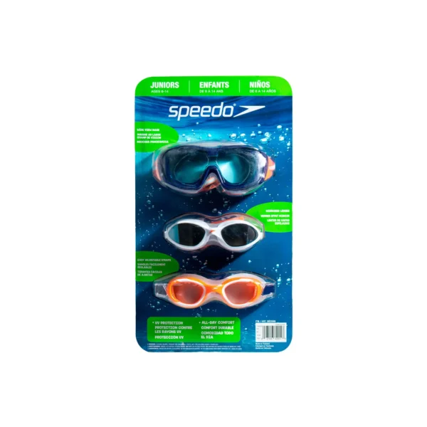 Set de 3 lentes para nadar marca Speedo junior de 6 a 14 años.